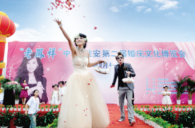 參加婚慶文化博覽會的單位在進行婚慶文化表演。■葉首衛(wèi) 曹政