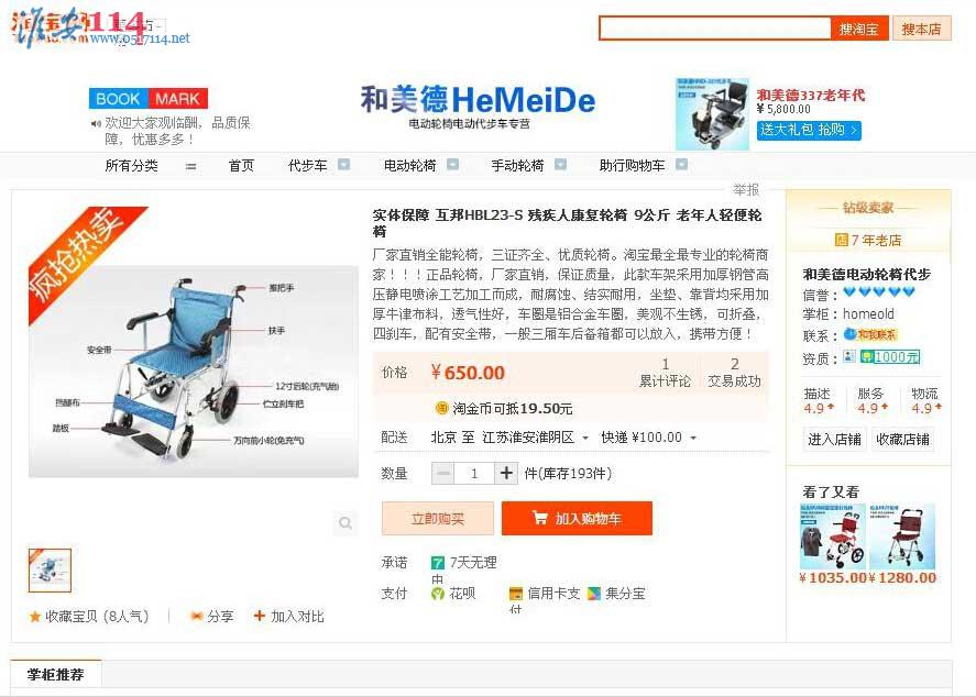 因家中老人還有輪椅用,所以這個全新輪椅就一直沒有用,又沒有地方放,故現(xiàn)將其轉(zhuǎn)讓。這款輪椅是互邦輪椅 HBL23-S /鋁合金/輕便/折疊/帶后手剎 帶安全帶的,非常的輕只有9公斤比老人現(xiàn)用的那款要輕一半,淘寶上的價格基本都在600多,現(xiàn)450元誰家里需要的拿去。