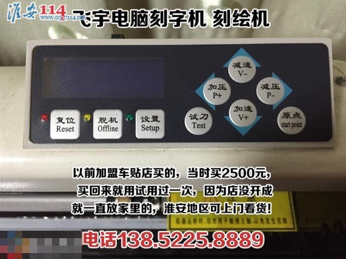 轉(zhuǎn)讓一臺飛宇電腦刻字機、刻繪機、刻花機、割字機,以前加盟車貼店的時候購買的,當時買2500元,回來就試用過一次,因為店沒開成,就一直放家里的閑置了,現(xiàn)在1200元!淮安地區(qū)上門看貨!有意者請電話聯(lián)系。