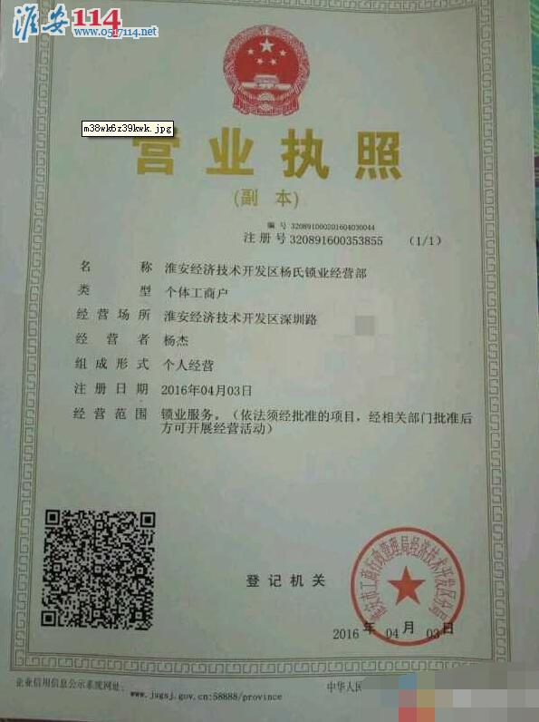 淮安百姓網(wǎng)關(guān)鍵詞:淮安開鎖,楊氏開鎖、換鎖、修鎖,工商注冊(cè),公安備案