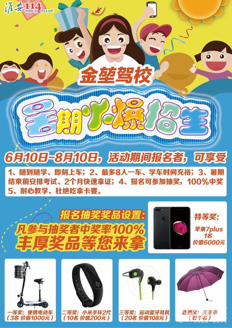 金湖金堃駕校為高考學(xué)子加油助力!"莘莘學(xué)子十年寒窗,功成名就只待今朝"一年一度情系萬家的高考開始了,本著"回報社會,無私奉獻(xiàn)"的精神,金堃駕校在高考期間,組織十輛志愿服務(wù)車,免費接送高考學(xué)生,如有需要請?zhí)崆奥?lián)系,以便合理安排時間和路線!6月10日至8月10日報名即可參與抽獎活動,100%中獎率,活動期間報名的學(xué)員可享受: