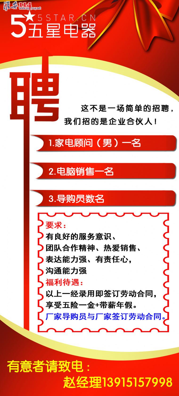 五星電器有限公司洪澤大賣場招聘家電顧問、電腦銷售、導購員相關圖片信息