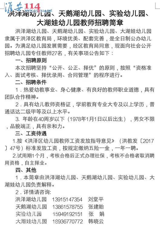 淮安百姓網關鍵詞:洪澤湖幼兒園、天鵝湖幼兒園、實驗幼兒園、大湖娃幼兒園教師招聘簡章