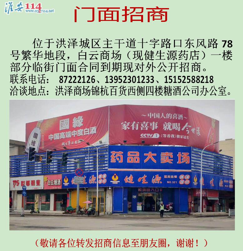 淮安百姓網(wǎng)關(guān)鍵詞:洪澤城區(qū)東風(fēng)路78號(hào)十字路商鋪合約期滿,現(xiàn)對外公開招商