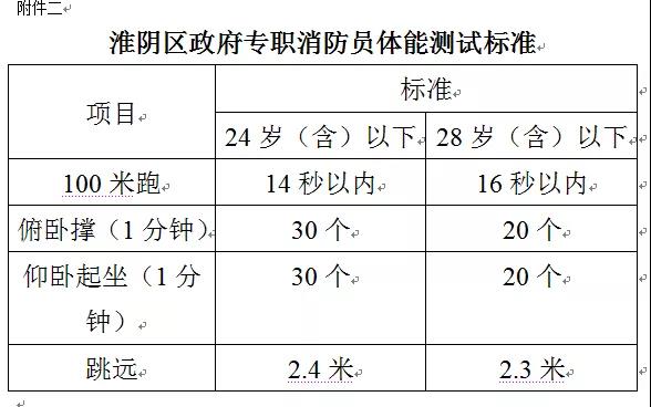 (4)淮陰區(qū)政府專職消防員體能測試標準。