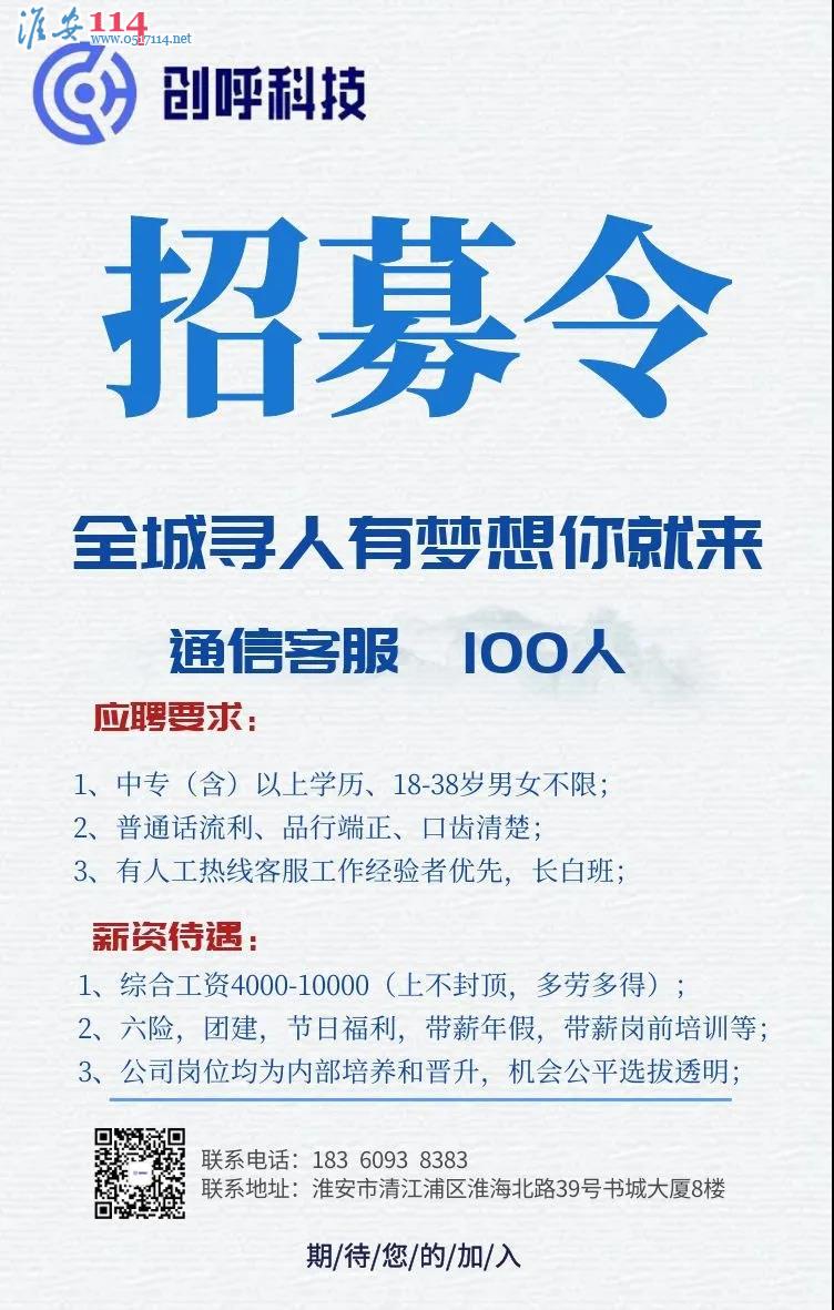 淮安百姓網關鍵詞:江蘇創(chuàng)呼信息科技有限公司招聘中國移動客服專員100名