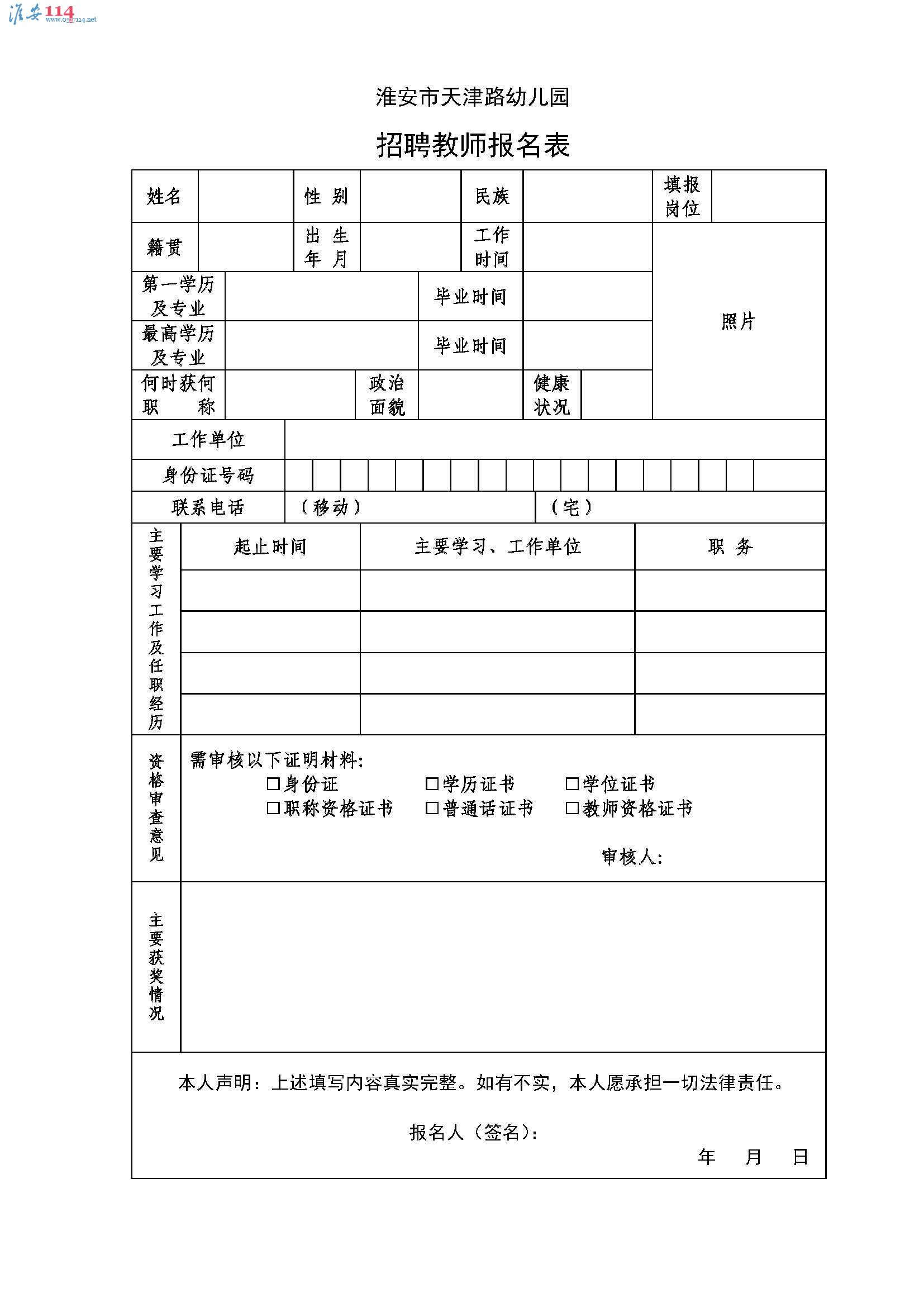 3.材料審核:報名人員須持本人身份證、學(xué)歷學(xué)位證書及崗位相關(guān)的證書原件及復(fù)印件,近期同底2寸免冠證件照2張,上交《淮安市天津路幼兒園公開招聘工作人員報名表》和《健康信息表》(詳情請點擊閱讀原文或掃描二維碼均可)。