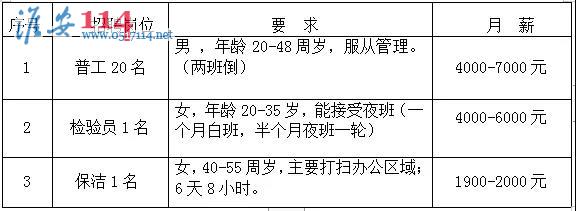 招聘崗位:普工、檢驗員、保潔