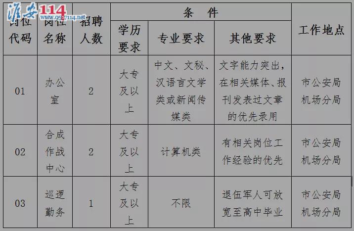 2.報(bào)名地點(diǎn):淮安市公安局機(jī)場(chǎng)分局(淮安市空港路1號(hào))。每人限報(bào)一個(gè)崗位。