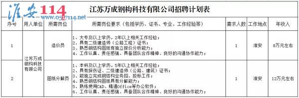 淮安百姓網關鍵詞:江蘇萬成鋼構科技有限公司公開招聘簡章