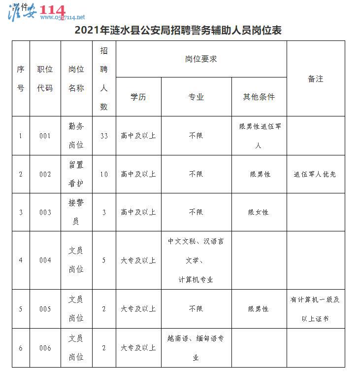 漣水縣公安局警務(wù)輔助人員招聘簡章相關(guān)圖片信息