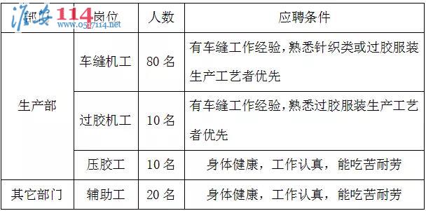 淮安百姓網(wǎng)關(guān)鍵詞:淮安耀陽服裝有限公司車縫機工、過膠機工、壓膠工、輔助工