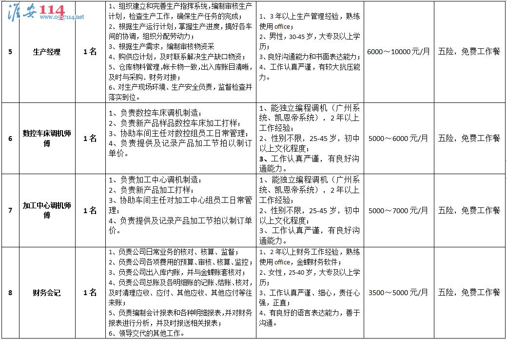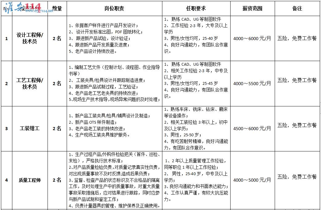 因公司組建初期,需要各類管理、技術(shù)、質(zhì)量等精英骨干,特向社會(huì)公開招聘若干人才,崗位如下: