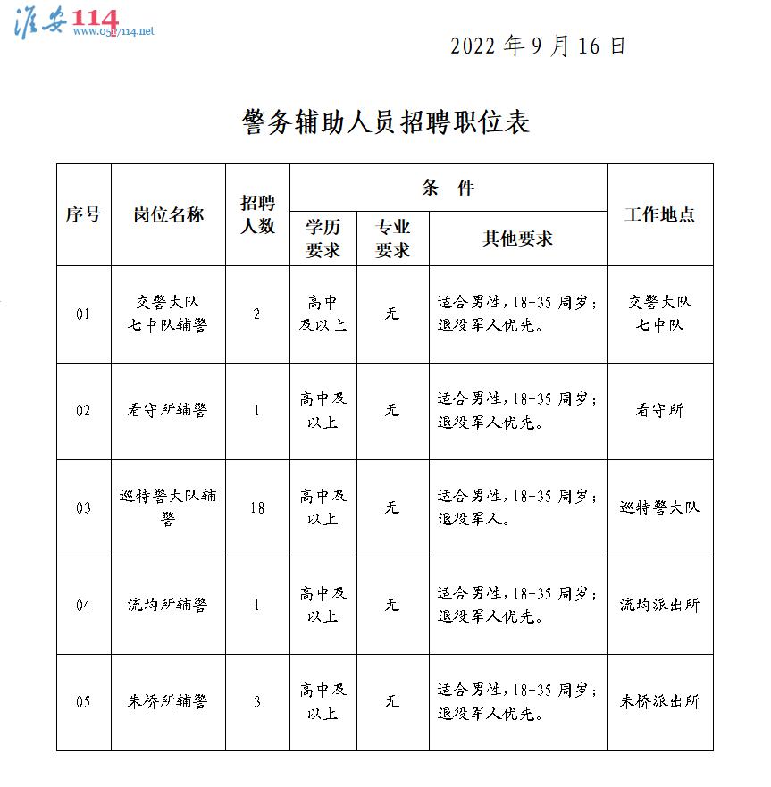 淮安市公安局淮安分局招聘警務(wù)輔助人員公告(2022年第四次招聘)相關(guān)圖片信息