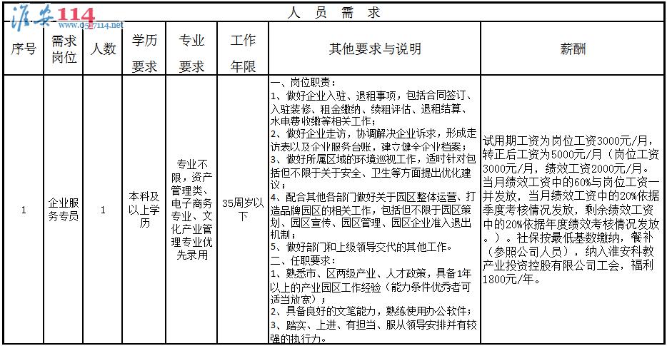淮安市大學(xué)科技園管理有限公司因業(yè)務(wù)發(fā)展需要面向社會公開招聘派遣制工作人員1名,具體如下: