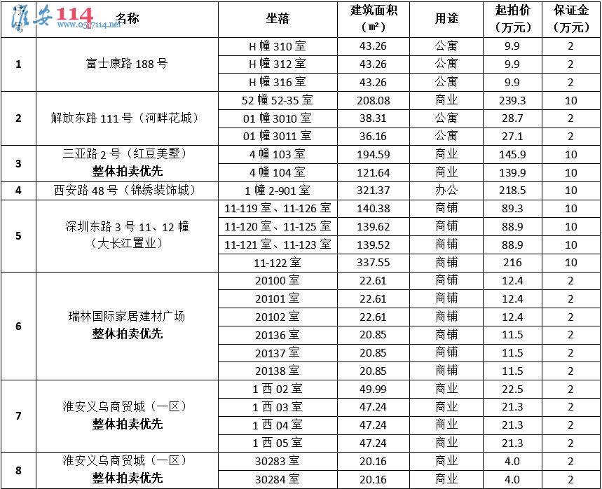 淮安百姓網(wǎng)關(guān)鍵詞:公寓、商鋪、辦公、商業(yè)房產(chǎn)拍賣