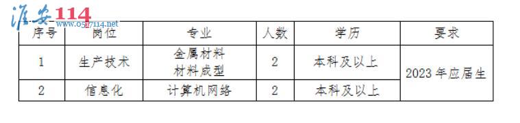 江蘇天淮鋼管有限公司招聘生產(chǎn)技術(shù)、信息化工作人員各2名