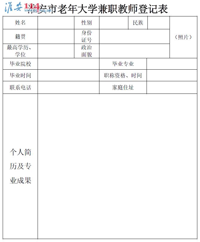 附:淮安市老年大學(xué)兼職教師登記表